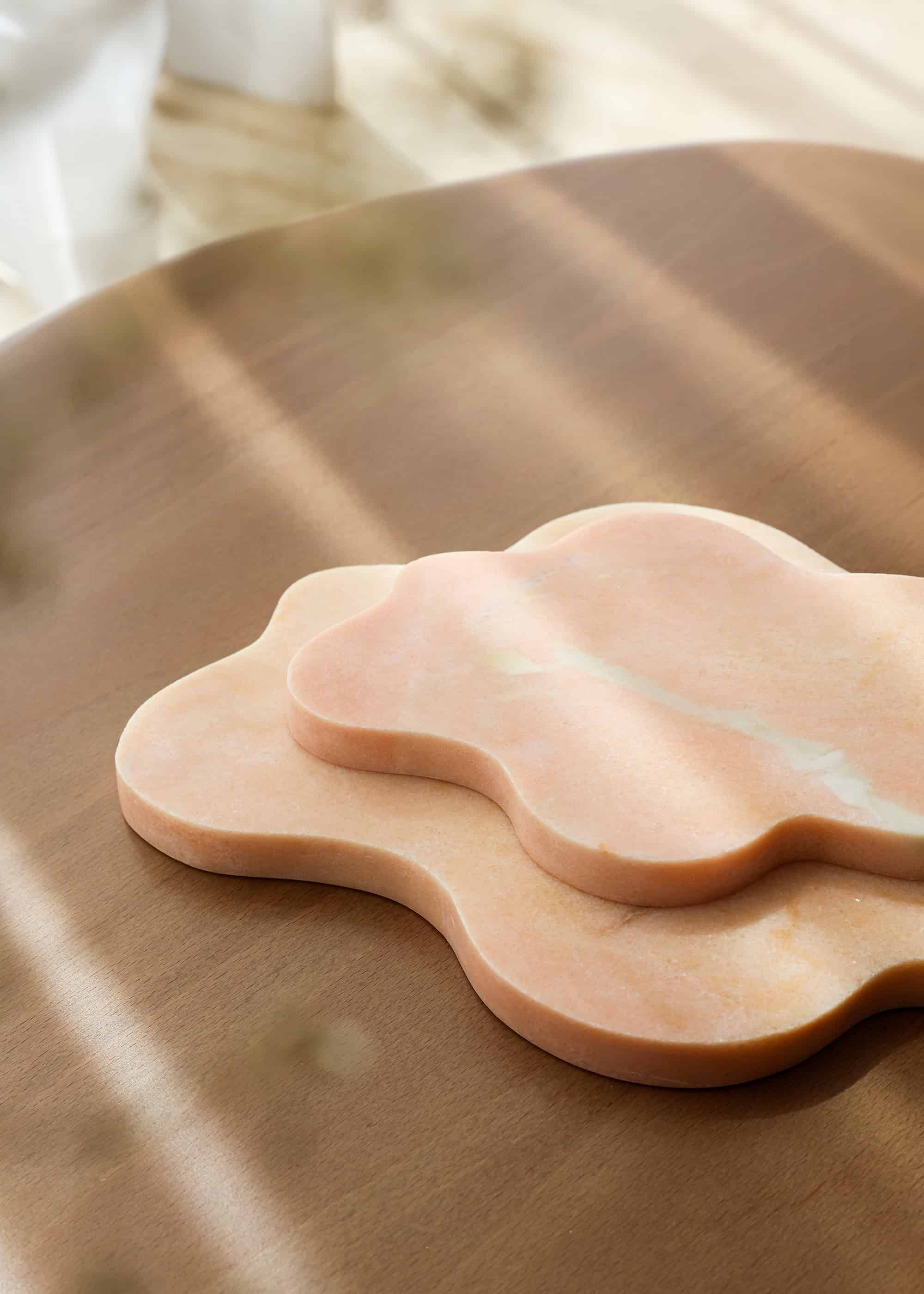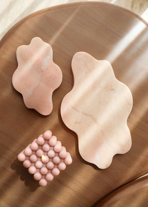 Sold as a set, the cloud trays are craftedSold as a set, the cloud trays are crafted f from Rosa Aurora marble, each tray features natural veining that makes every piece unique. Its versatile design is perfect for jewelry, perfumes, candles, trinkets, or everyday essentials - styled on a vanity, coffee table, entryway console, bedside table, or open shelving. Durable and easy to care for, wipe clean with a soft damp cloth and avoid harsh or acidic cleaners.