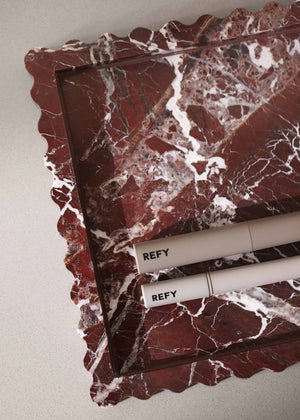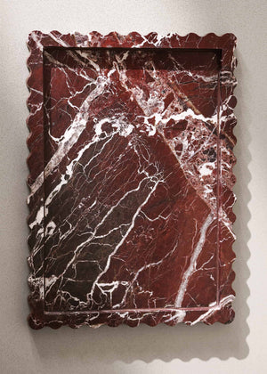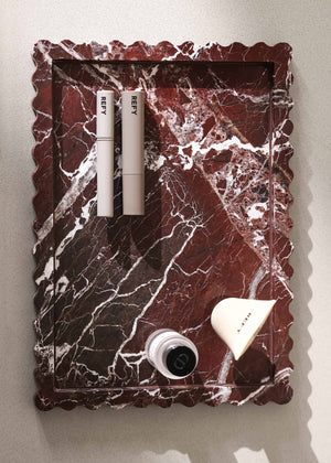 Crafted from Rosso Livanto marble, each tray features natural veining that makes every piece unique. Its versatile design is perfect for jewelry, perfumes, candles, trinkets, or everyday essentials - styled on a vanity, coffee table, entryway console, bedside table, or open shelving. Durable and easy to care for, wipe clean with a soft damp cloth and avoid harsh or acidic cleaners.